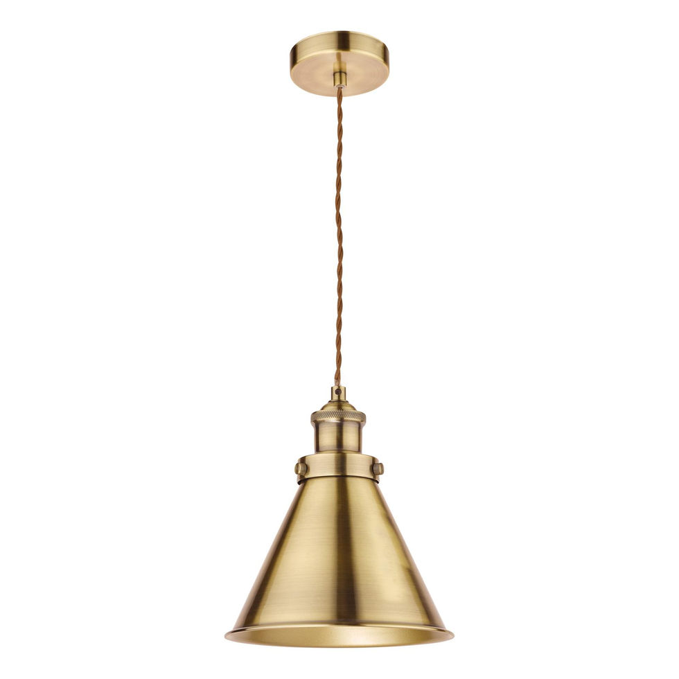 Type: Pendant | Finish: Antique Brass | Lamp Holder: E27 (ES) | No. of Lamps: 1 | Max Wattage: 40W | Class: 2 - Double Insulated | Dimensions: H: 1240mm × Dia: 190mm × Min H: 240mm × Max H: 1240mm